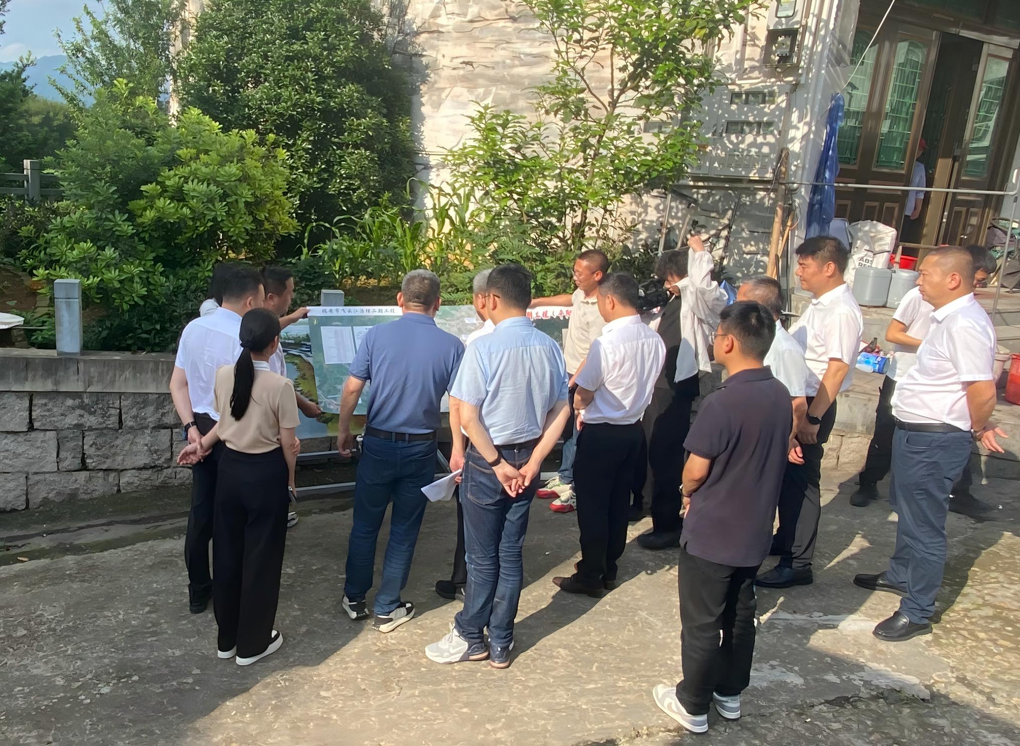 应希克一行深入一线察实情,把脉项目解难题,先后实地考察飞云江二期施工现场情况,听取项目指挥部关于工程规划、建设进度和防汛准备工作的汇报。在长达9.94公里的堤防作业区,应希克详细询问施工工艺、材料标准及防洪能力提升情况,重点关注工程对周边农田、居民区的处理措施。针对项目涉及的跨部门协调、汛期施工安全等难点,他现场协调相关部门建立问题清单,明确责任主体和解决时限,要求“以节点倒逼进度,以督导压实责任”。